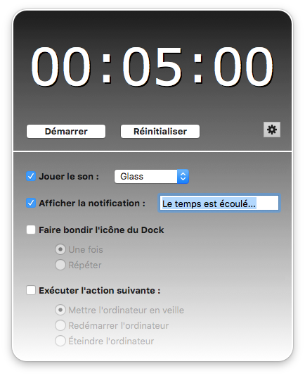 Toki est un minuteur qui permet de choisir certaines actions à exécuter lorsque le temps est écoulé. Les actions possibles sont :
