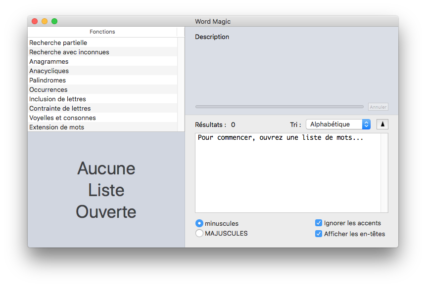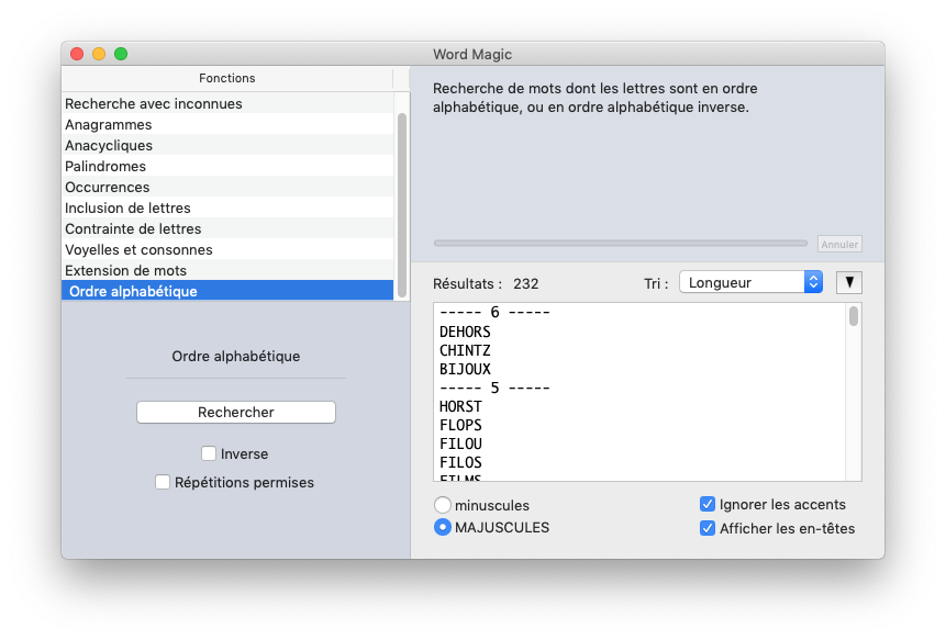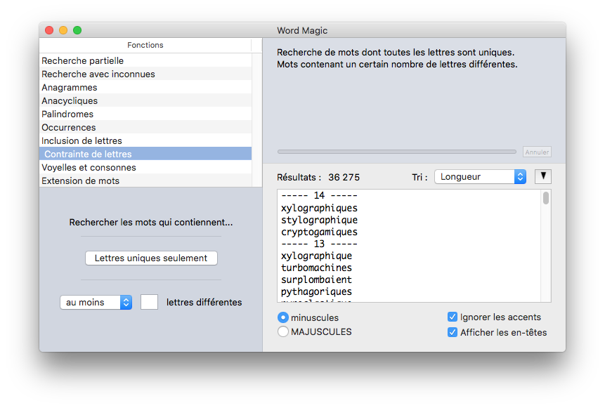 Word Magic est un outil qui permet d'effectuer des recherches à partir d'une liste de mots selon divers critères.